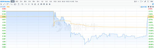 圖2:億邦國際(EBON)上市首日分時圖走勢-富途牛牛