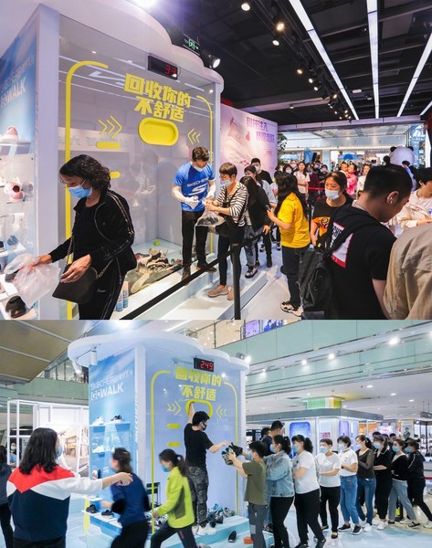 消費者僅需攜帶任意舊鞋至活動現場,并將產品投入指定回收箱,就能參與幸運抽獎。100%中獎福利。活動第一天,現場就人頭攢動,簡單有趣,超人性化參與機制備受消費者追捧,被稱為“真正為消費者送舒適福利”。
