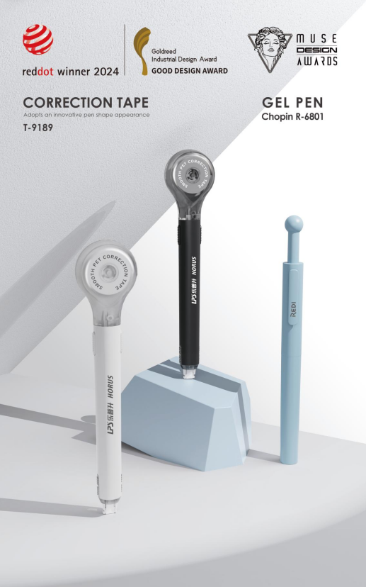 談及與廣美人才團(tuán)隊(duì)的合作,郭董語氣里滿是認(rèn)可,他還特意把廣美的學(xué)生親切地稱作“自己人”,笑著稱贊這些年輕人既有沖勁十足的創(chuàng)新熱情,又能讀懂本土用戶的需求,“這正是樂普升一直想找的自己人”。要知道,樂普升的設(shè)計(jì)工作室扎根在廣美附近,這一扎就是20多年。這些年持續(xù)加入樂普升團(tuán)隊(duì)的美院人才,不僅為企業(yè)帶來了鮮活多元的審美視角,更關(guān)鍵的是,他們能精準(zhǔn)捕捉中國學(xué)生使用文具時(shí)的痛點(diǎn),設(shè)計(jì)出的產(chǎn)品自然更貼合學(xué)生的實(shí)際需求,也更顯貼心。 這種“貼近人才+扎根用戶”的模式,讓樂普升從技術(shù)突破逐步邁向國際認(rèn)可。說起斬獲“紅點(diǎn)獎(jiǎng)”的筆式修正帶,郭董特意放慢語速,詳細(xì)講起了背后的故事。他說,團(tuán)隊(duì)在調(diào)研時(shí)發(fā)現(xiàn),傳統(tǒng)修正帶對(duì)學(xué)生有三大困擾:握持時(shí)不夠舒適、日常攜帶不方便、自帶的蓋帽還容易丟失。正是看到這些痛點(diǎn),“讓修正也能如書寫般自如”成了他們明確的設(shè)計(jì)目標(biāo)。為此,團(tuán)隊(duì)做了不少突破性嘗試:憑借3cm帶芯艙與轉(zhuǎn)軸式引帶管道的顛覆性設(shè)計(jì),把傳統(tǒng)修正帶的帶身徹底改造成了一支筆的大小,解決了攜帶和握持的問題;還推出了可替換芯的方案,不僅延長(zhǎng)了修正帶主體的使用壽命,更實(shí)現(xiàn)了續(xù)航與環(huán)保的雙重升級(jí)。他強(qiáng)調(diào),2024年這款產(chǎn)品獲得德國紅點(diǎn)獎(jiǎng),不僅是國際社會(huì)對(duì)“中國設(shè)計(jì)”的認(rèn)可,更印證了創(chuàng)新的本質(zhì)從來不是天馬行空的想象,而是始終把用戶放在心上的創(chuàng)新。